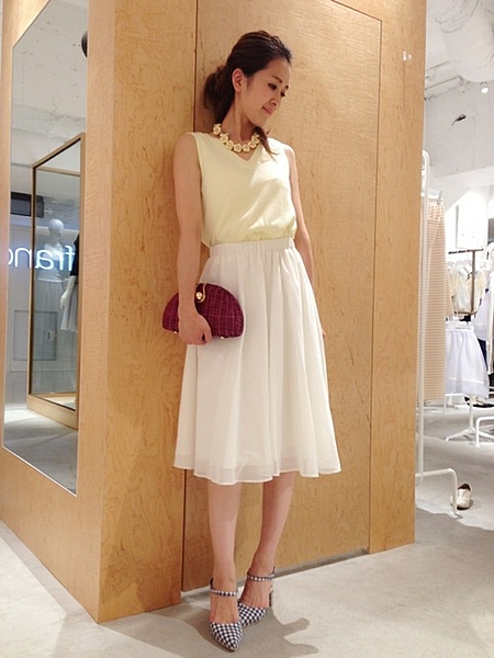 白の膝丈スカートを合わせたら