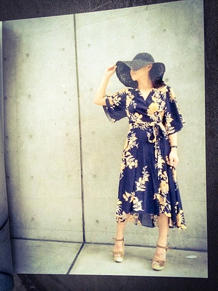 黒の女優帽もオトナな色っぽい雰囲気がでて素敵。ゆったりとしたワンピースと合わせて。