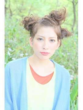 お団子をちょっと崩したり、後れ毛を出すことでゆる~とオシャレさんに見えるお団子ヘアは、暑くて溶けちゃうアイスクリームのよう♡