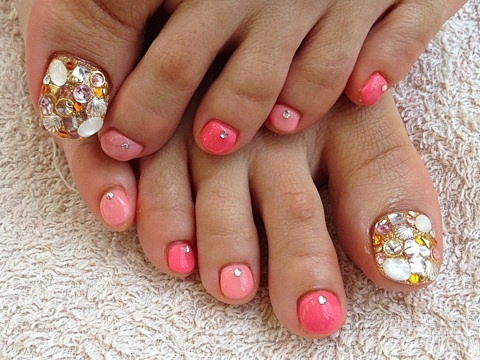 ギラギラキラキラが大好き。でも、ハンドネイルだとギラギラすぎてないわ〜って思われちゃう。本当はやりたいけど勇気が出ない。それなら、サンダルからちょこっと見えるフットネイルでギラギラのストーンネイルを挑戦して見ませんか?キラキラ好きにはたまらないフットネイル紹介します。
