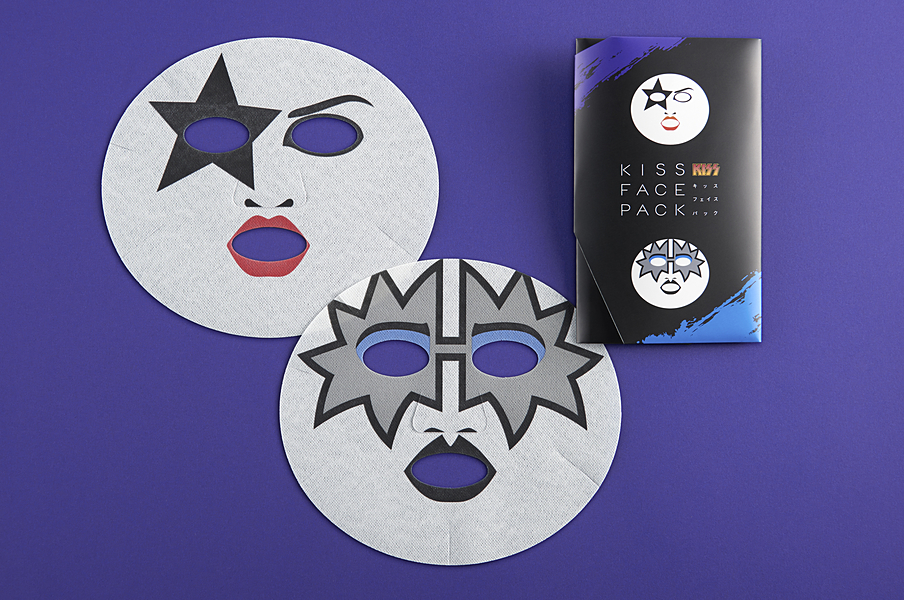 『KISS フェイスパック』は、世界的に有名なハードロックバンド『KISS』のメイクを再現したフェイスパックです。欧米で は美容用フェイスパックを使用する文化がないため、日本の文化を欧米の方にも知っていただきたいという思いから、 より欧米の方が親しみやすいアイコン(キャラクター)とのコラボレーションを実現すべく、世界的に有名なロックバンド 『KISS』にオファーを行いました。