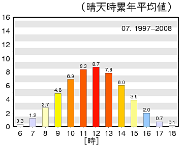 春先から秋口にかけては、朝は8時前後から夕方16時くらいまで、かなりの量が照射されているのですよ。