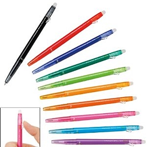温度変化によりインキを無色にする新開発の「フリクションインキ」を搭載した新発想の筆記具です。「フリクションインキ」には消色温度が設定されているため、筆跡を専用ラバーで擦ることで生じる摩擦熱によりインキの色が無色に変わり、筆跡を消すことができます。