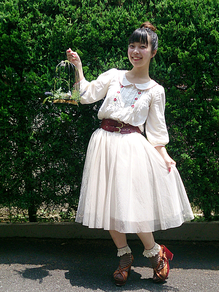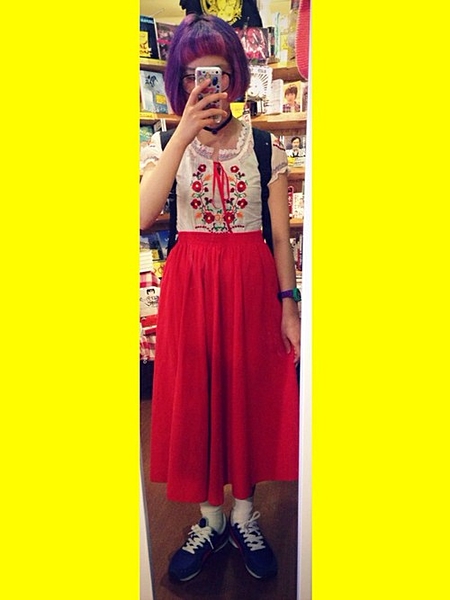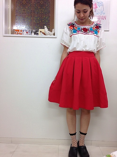 パッと目をひく赤いスカートがステキ!刺繍の赤ともリンクしていて◎