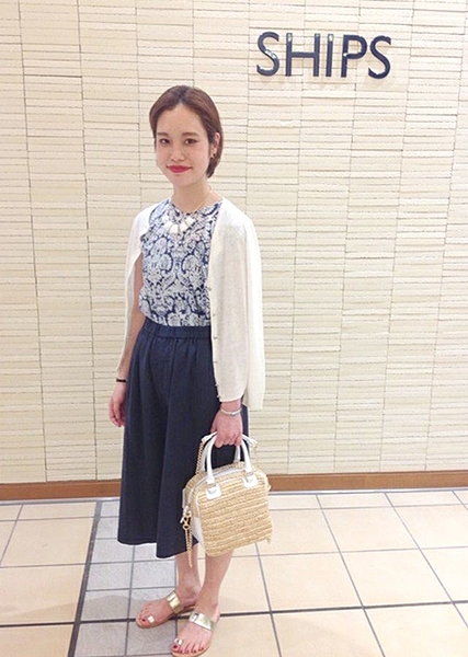 ホワイトカーディガンには、今季トレンドのガウチョパンツをプラス。インド製ならではの風合いが引き立つトップスは、上品さを演出してくれます。胸元に、ビジューネックレスを合わせて、スタイリングにポイントをつけてみて。