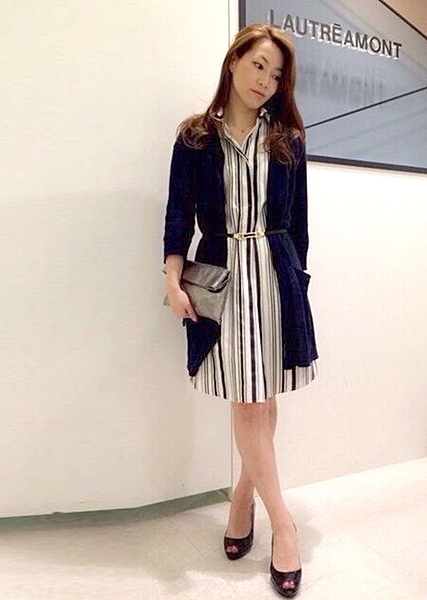 ◎ボディラインを細くみせるストライプ柄のワンピース