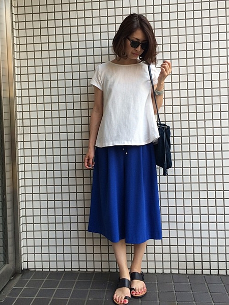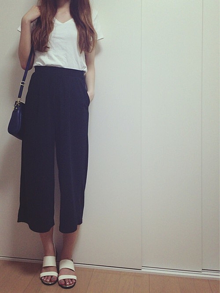 ガウチョパンツ+〇〇で大人ゆるコーデ