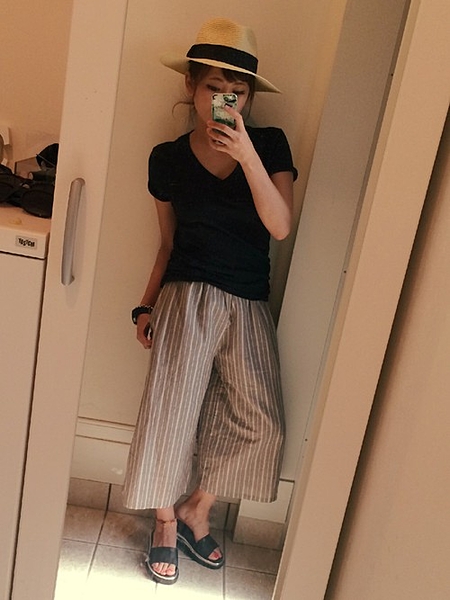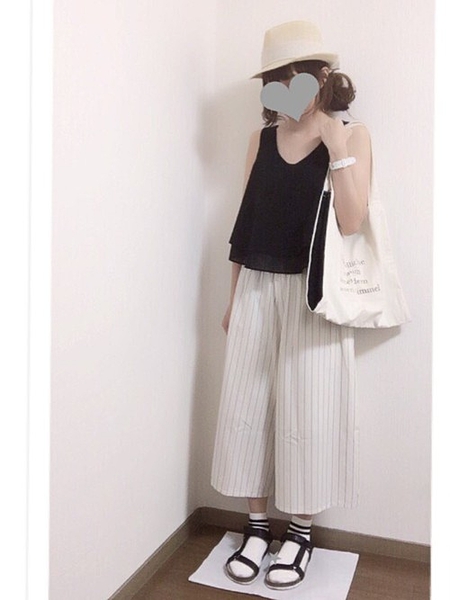 ホワイトストライプのガウチョパンツはとってもハンサム♡