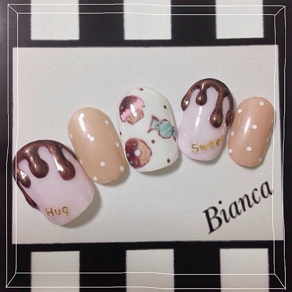 とろ〜りとチョコレートが溶けたようなデザインや、チョコスプレーが爪にトッピングされたような、甘い甘いデザインのスイーツネイルはいかが?♡甘くて可愛いスイーツを爪にのせて、ぱくっと食べたくなっちゃうようなスイーツネイルに変身しちゃいましょう♪