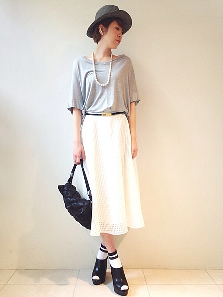 この夏空前の白Tブームが到来中~!気づけば周りのみんなが白Tを着ている・・・なんてことも!人と一緒は嫌だ!なんて思う人もるのでは?そんな人におすすめなのはグレーT♩白ほどカジュアルすぎず、大人で女性らしい印象をあたえてくれるグレーなら、白のボトムスとの相性も抜群♩グレーTに大注目です。