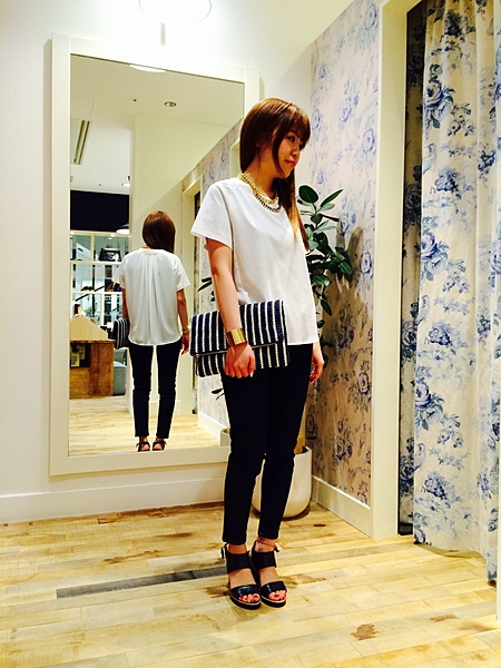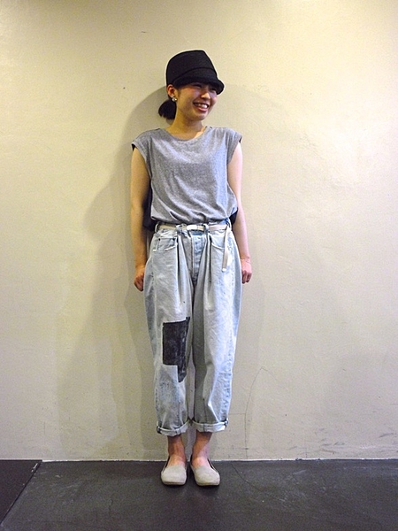 シンプルながら女性らしいドレープのきいたフレンチTシャツは、個性の強いデニムボトムスとの相性が抜群。