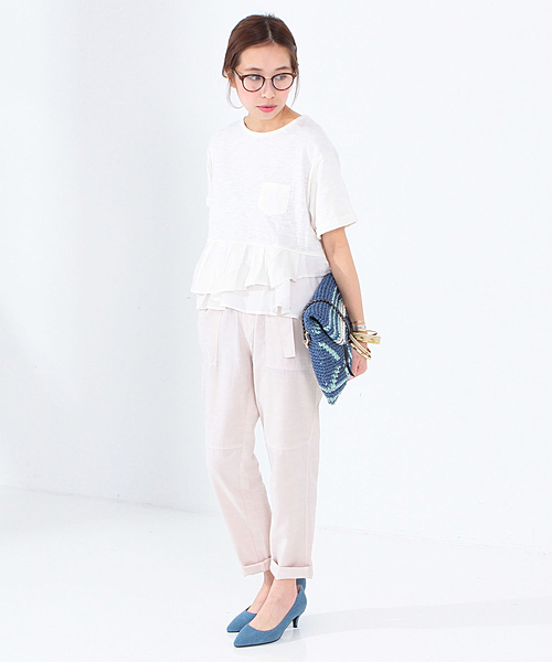 ロールアップした裾からは華奢な足首を見せて軽快に履きこなしたいですね。色違いあり。