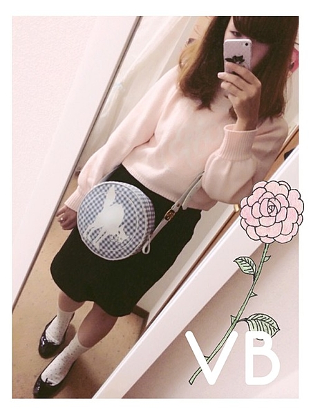 甘いピンクのニットを合わせて、