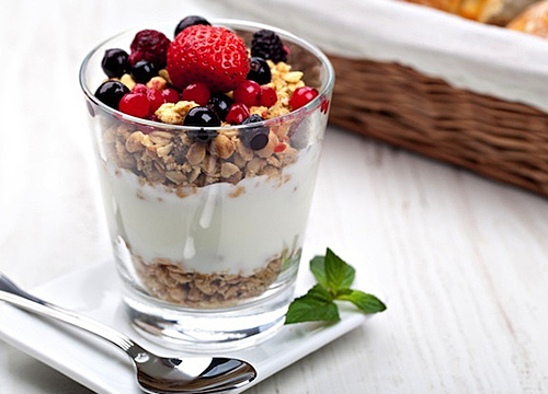パンケーキの上にヨーグルトを乗せちゃおう♪