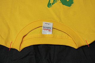 Tシャツも意外と奥深く首(衿)にゴムが入っている物や、生地の品質にポリエステルが入っていると伸びにくいですね。それと 首を触ってみて なるべく厚い物を選びましょう。当然首を引っ張って伸びにくいかチェックするのもOKだね。