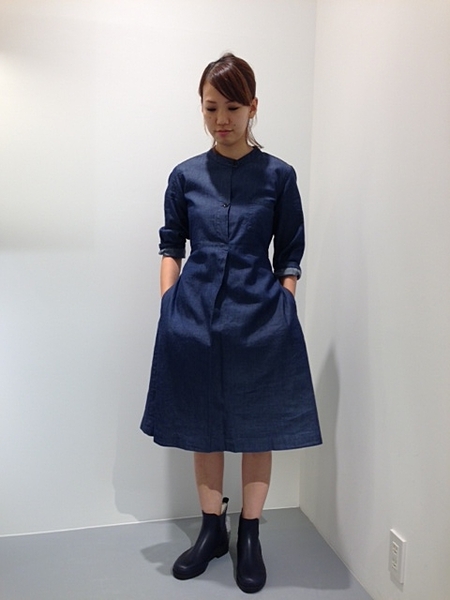 基本のデニムワンピースですが、ウエスト部分に絞ることが出来るベルトが付いているのが良いですね。