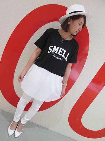 シフォン素材で切替えたTシャツ。