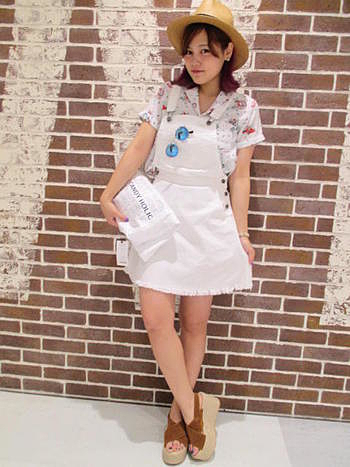裾にフリンジ加工を施したジャンパースカート。フロントポケットも手軽に着こなしのアクセントになります。ウエスト部分から、裾にかけて広がるフレアシルエットも女性らしいポイント。オフショルダーやレーストップスなどをインナーに挿して頂くような着こなしもオススメ。 また、今季はハットやスニーカーなど、小物で遊びを効かせたコーディネートもオススメです。