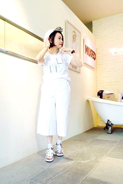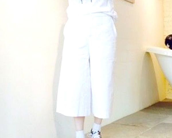 今季注目のデニム素材のガウチョパンツ。サンダルやハイテクスニーカーと相性抜群です!オールホワイトで統一し、足元は柄アイテムでまとめてみて。