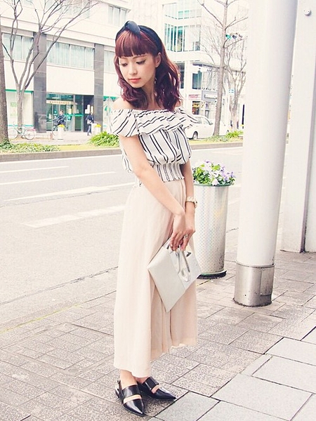 空気を孕むゆったりとしたシルエットで着心地も軽く涼しいアイテム。1枚で存在感のあるアイテムなのでトップスはシンプルに、コンパクトなTシャツやトレンドのボックスシルエットのノースリーブを合わせて。
