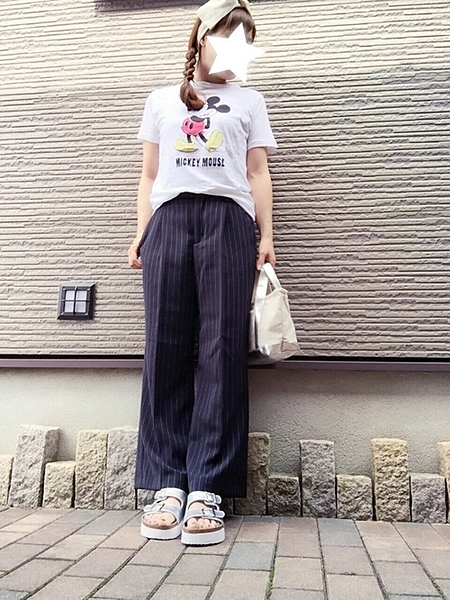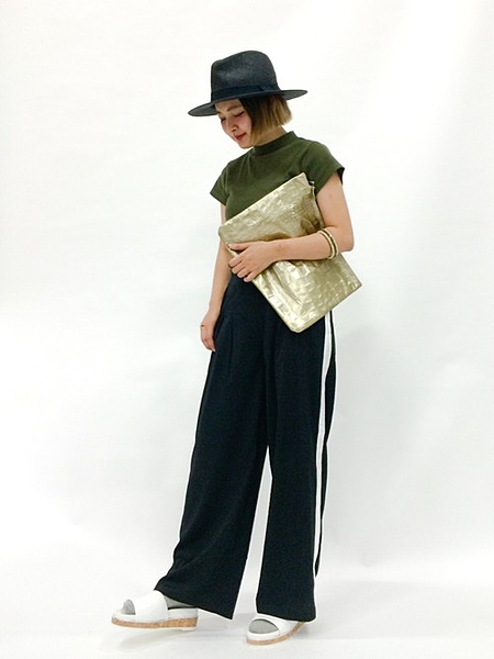 トレンドのワイドパンツでリラックスコーデの完成です。