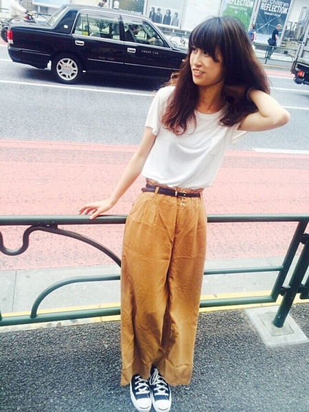 ワイドパンツの種類もいろいろだけど、ちょっぴり気持ち「丈長め」がいい感じ。