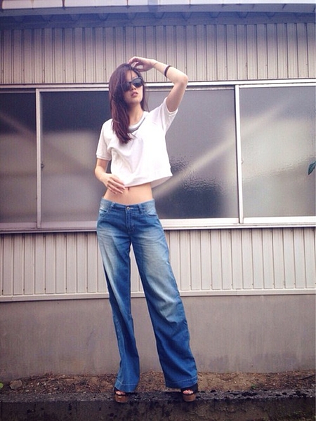 デニムワイドパンツはラフになりすぎないようにクロップドトップスと合わせるのが◎