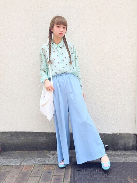 爽やかなアイスブルーのワイドパンツは同系色とまとめてとことん爽やかに♡