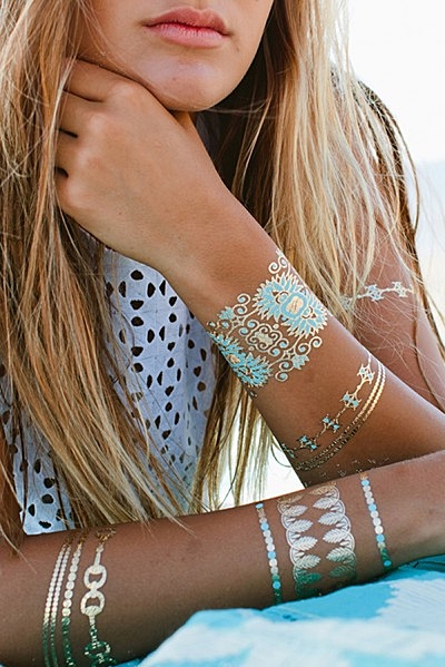 暑い夏 青い海 それにキラキラアクセサリー!定番のアクセサリーに一ひねり、今年の夏派フラッシュタトゥーで決まりっ!
