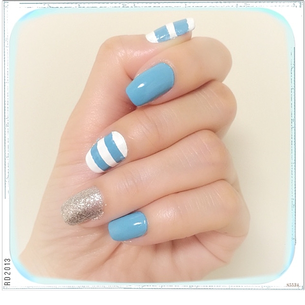 ブルーとホワイトのさわやかボーダーネイル
