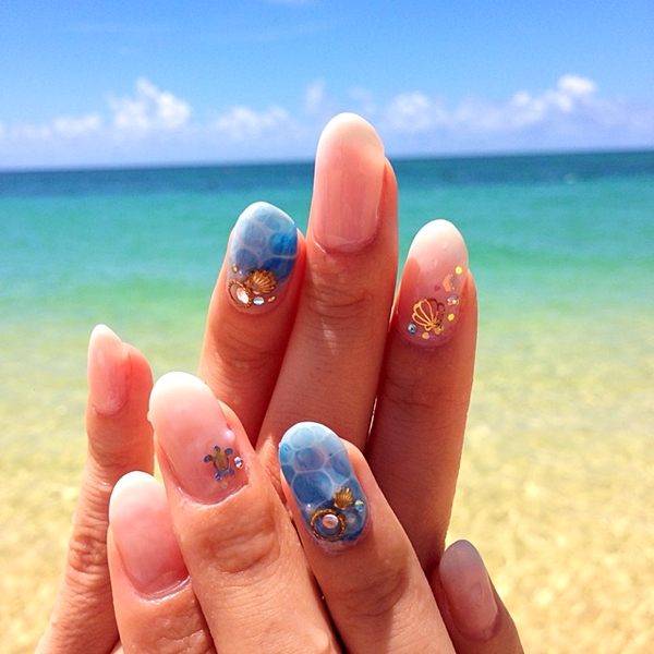 根本にシルバーラメを散らして、ゴールドのシェルやスターフィッシュはポイントに♡