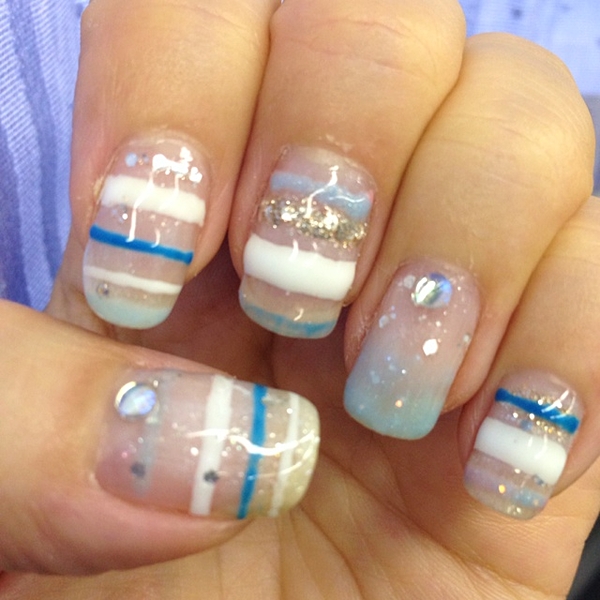 クリアベースにブルーとホワイトのランダムなボーダーが、夏にぴったりのデザイン☆