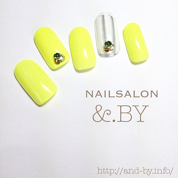 鮮やかなイエローが目を引くフレッシュネイル♡