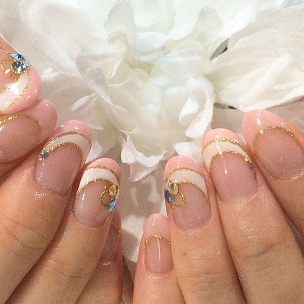 ネイルの魅力★ 手元がキレイだと、元気がでるんです。ネイルが華やかだと自分まで華やかな 気分になれるんです。ファッションの一部です。 爪キレイですね、そんな一言をもらえるんです。そこから会話が生まれ、 相手との距離も縮まります。そんな素敵なネイルです♪