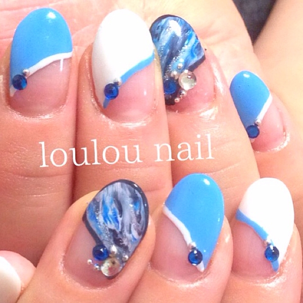 ネイビーとホワイトで落ち着いた印象のネイル。