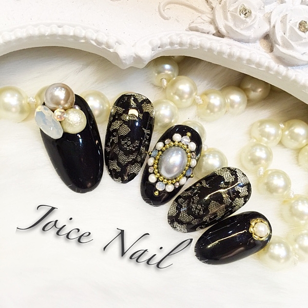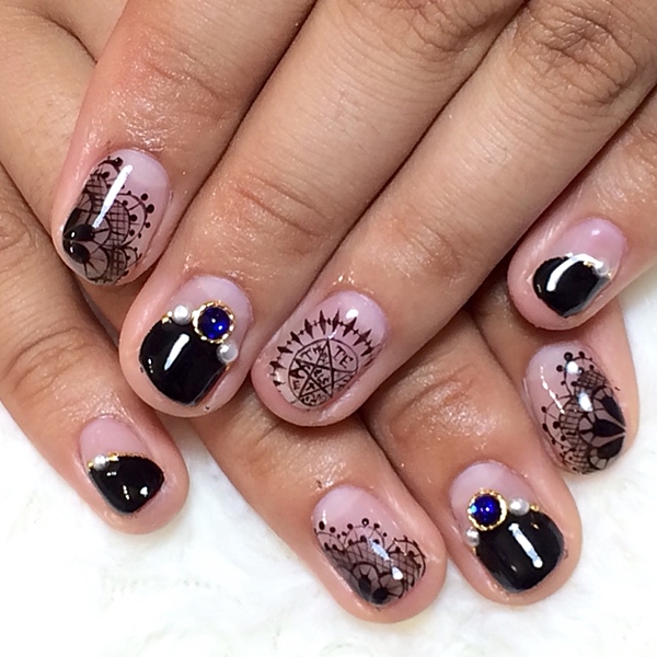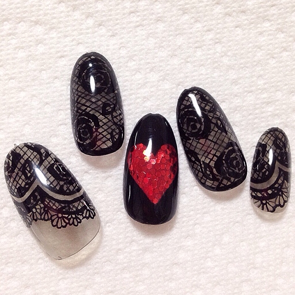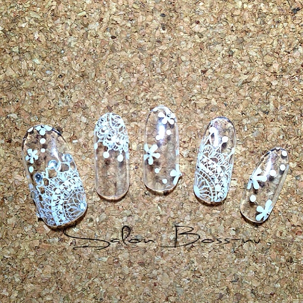 本物のレースを貼り付けた斬新なネイル。ジェルでしっかりコーティングすれば長持ちさせられます。