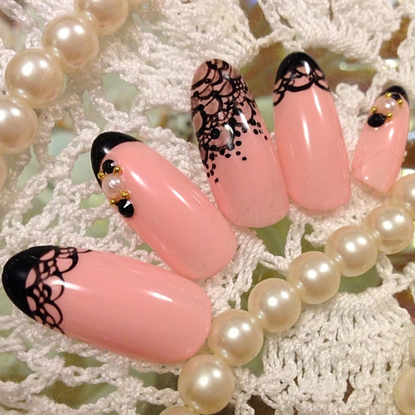ピンクのベースカラーにレースのライン。シールを貼るだけなのでセルフでも簡単にできちゃいます。