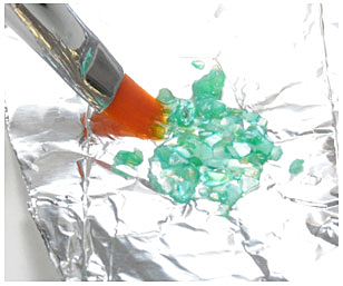 クラッシュシェルとクリアのマニキュアを混ぜます。