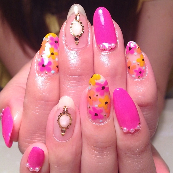 デートは花柄ネイルで女の子らしさをアピールしよう♡