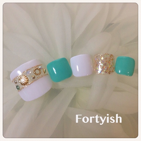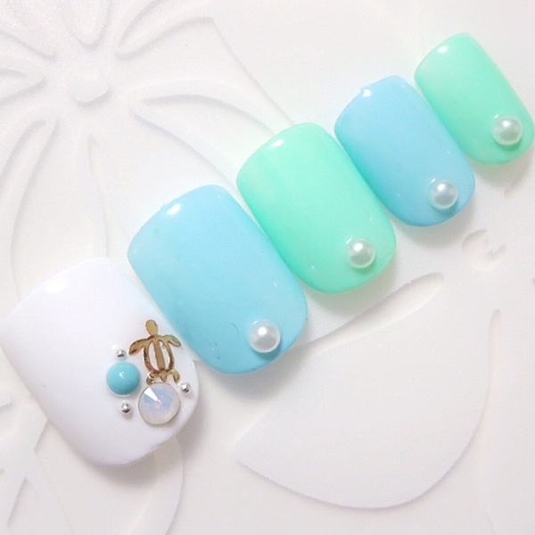 ターコイズブルーとホワイトでさわやかな夏ネイル☆