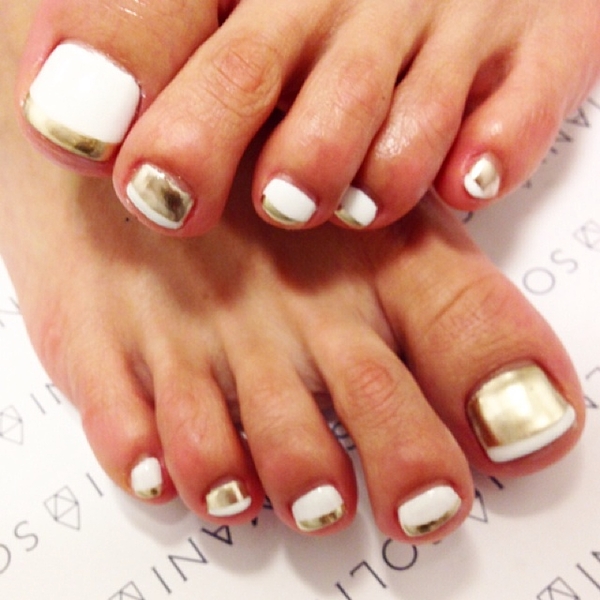サンダルを履くことがが増えてきたので仕事終わりにフットネイルして来たジメジメ湿気を爽やかに吹き飛ばすホワイト×ゴールド✨ http://t.co/opMUVp6Qw5