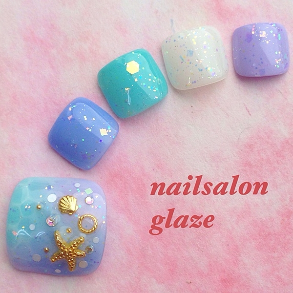 海モチーフがかわいい♡フットジェルネイルデザイン