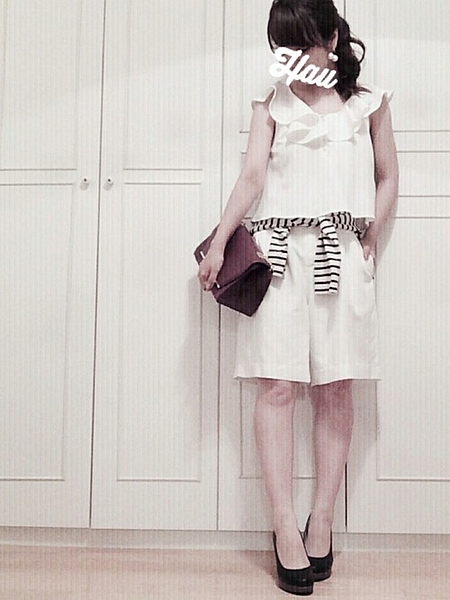 オールホワイトで甘めトップスにヒールで女の子♡