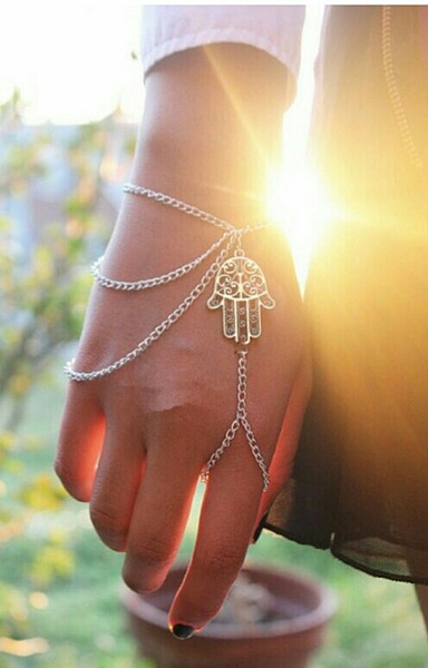 派手なワンピースには、ネックレスなどの目立つアクセサリーよりもハンドチェーンでこっそりオシャレを楽しみましょう♩