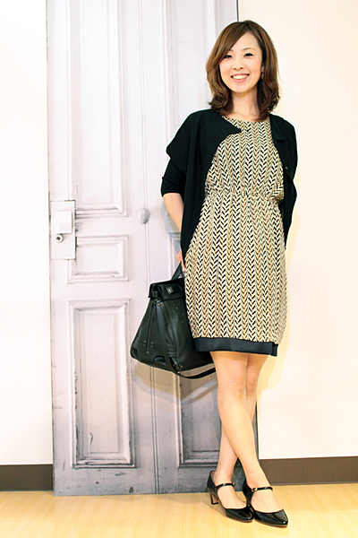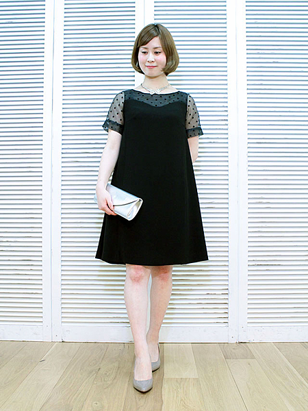 異素材の切替でメリハリのあるワンピース。ブラック一色でも平坦にならず可愛らしい印象。