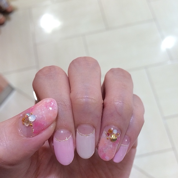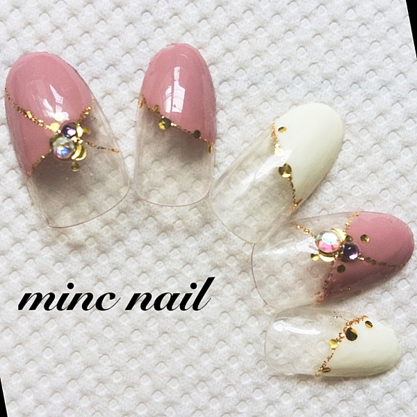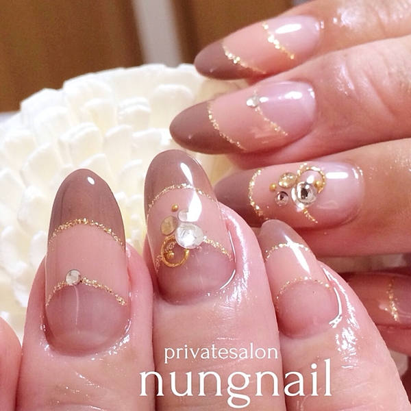 ヌードカラーで上品なデザイン。大人な女性の指先になれますね。