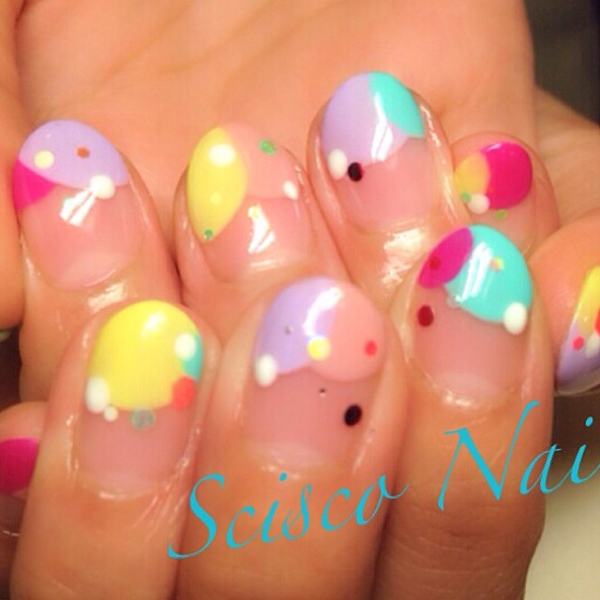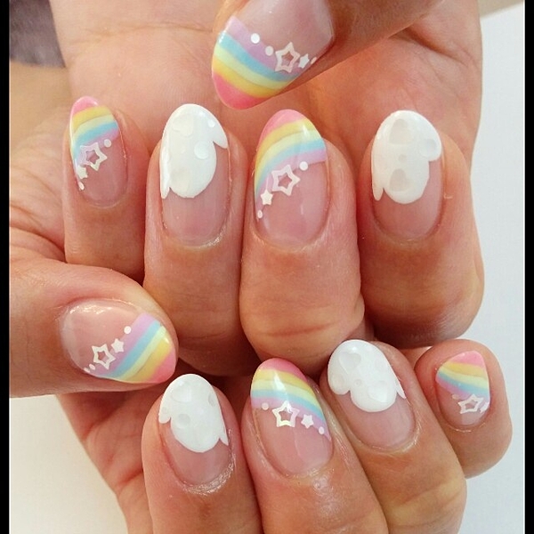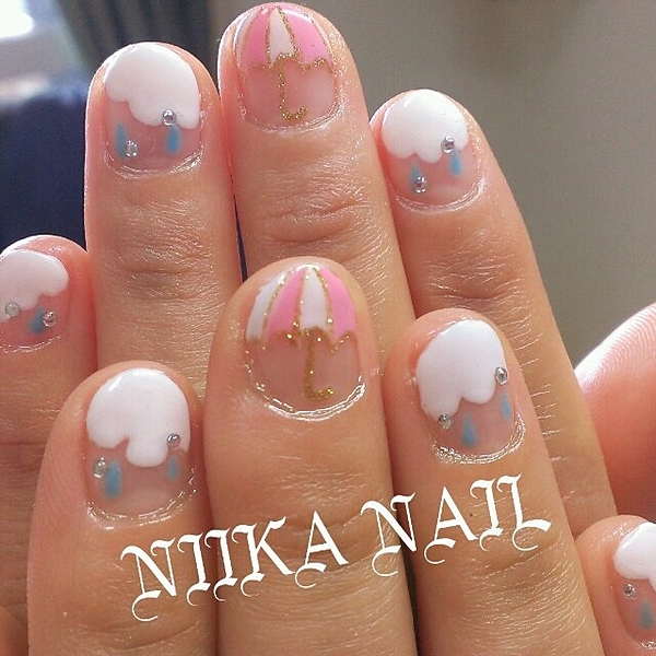 もこもこ雲、傘、虹、カラフルな雨・・・いっぱい詰め込んだ梅雨ネイル☆