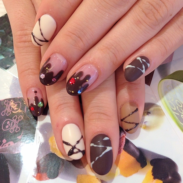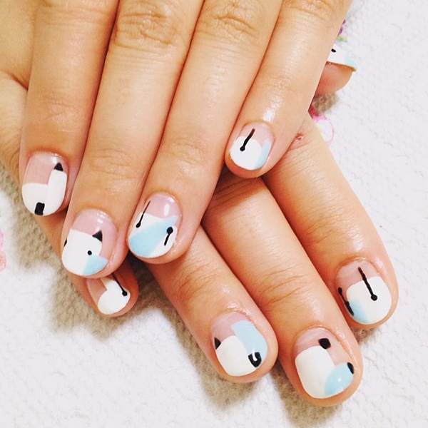 ヌーディーなベージュをベースにした、幾何学風フレンチ
