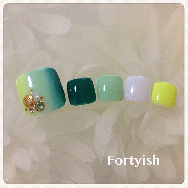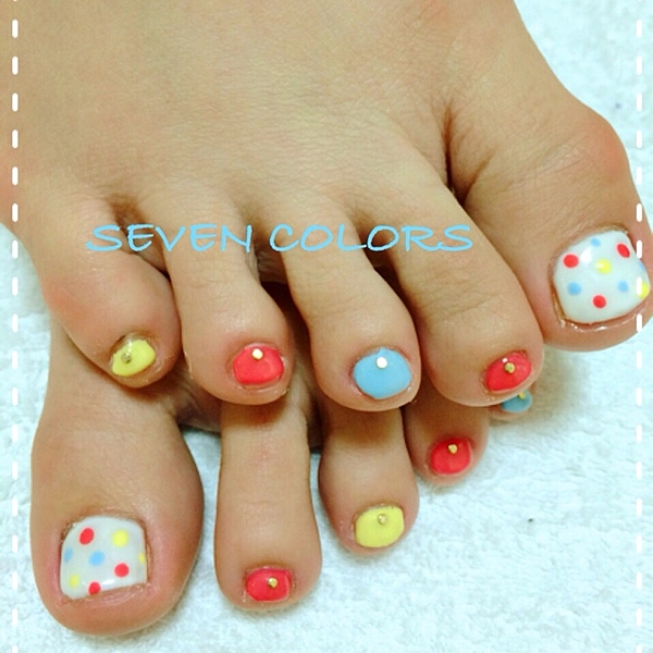 夏のフットはどんなにカラフルにしても、かわいく仕上がりますね♡
