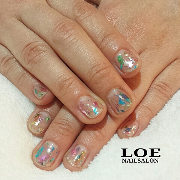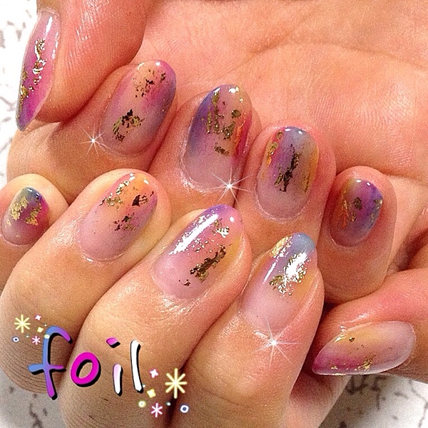 カラフルなホイルネイルも